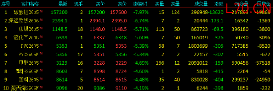 收评|国内期货主力合约跌多涨少,碳酸锂跌近8%