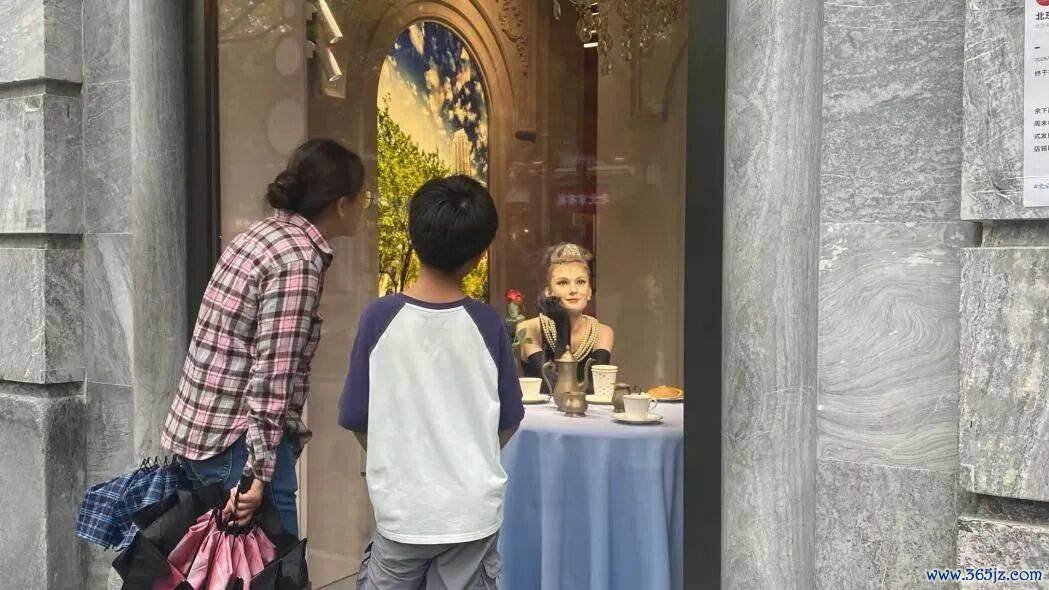 一对母子在北京杜莎夫人蜡像馆外观看 图片来源:每经记者 毕媛媛 摄