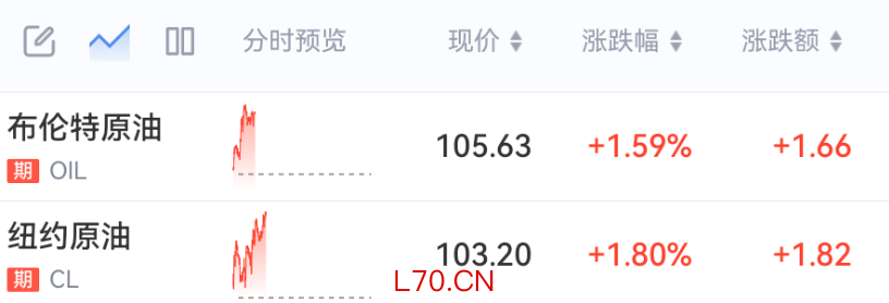 4月1日,国际油价居高不下,美油涨超103美元/桶,布伦特原油涨超105美元/桶。