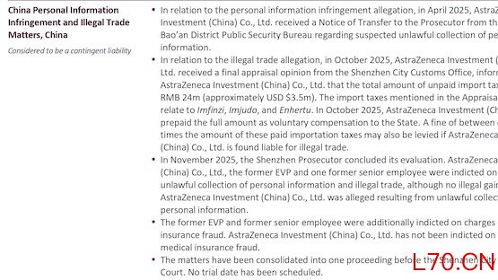 阿斯利康中国以及阿斯利康两位前高管,被深圳检方提起公诉