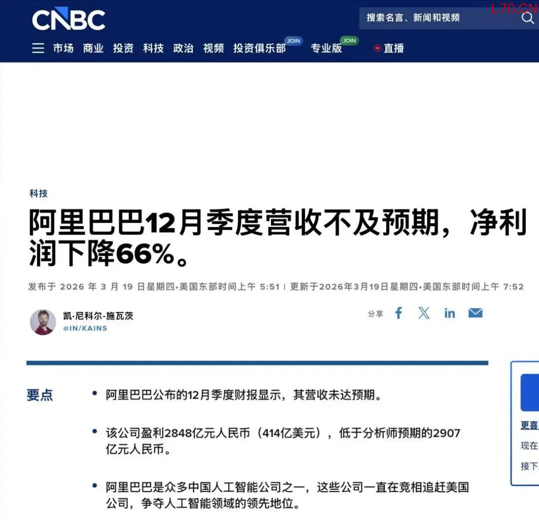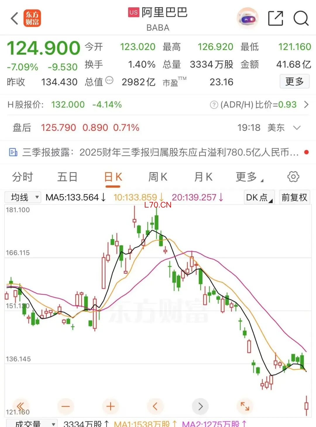 资本市场教训了阿里巴巴的即时零售失误:净利润大跌 33.60%,股价大跌 7.09%!马云之后无战略!