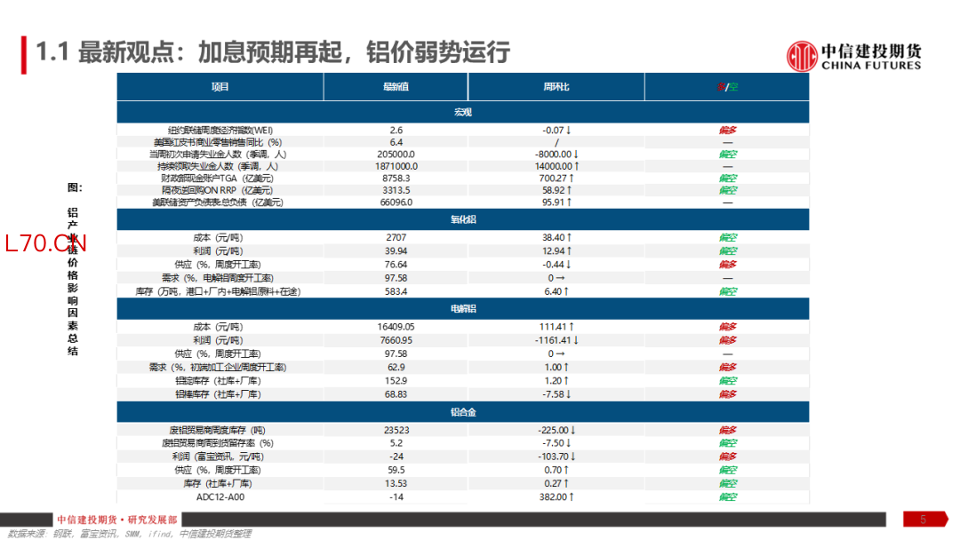 【建投有色】铝产业链周报 | 加息预期再起,铝价弱势运行